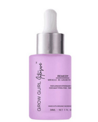 GROW GURL Intensive™ Remedy, Miracle ReGrowth Serum is a complete and comprehensive treatment that promotes fuller, thicker, denser hair with consistent use. This serum is a oil-base with a refreshing, naturally-derived lemongrass scent, and meticulously processed with a safe, herbal-rich blend. This formulation is a combination of essential oils and nutrient-dense botanicals that have been proven to have anti-oxidant, antibacterial, and anti-fungal properties. Additionally, this blend has been proven to encourage optimal scalp and follicle health while increasing blood flow to the scalp. Use this powerhouse in a bottle to fix issues at the root. Let's stop hiding and start fixing: